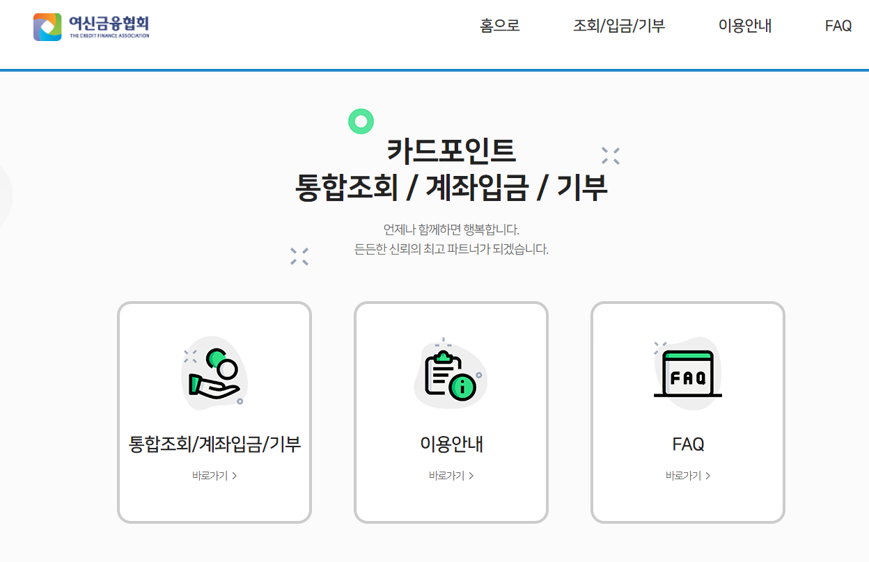 먼저 접속해보면 아래에 "카드포인트 통합조회&계좌입금"이라는 항목을 찾아서 들어가줍니다.