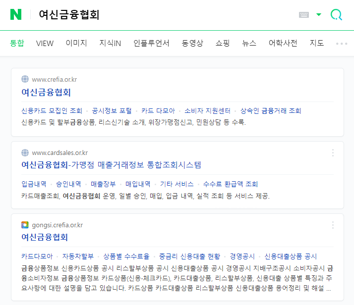 먼저 여신금융협회를 입력해보면 사이트가 나올텐데 한번 클릭해보도록 하겠습니다.