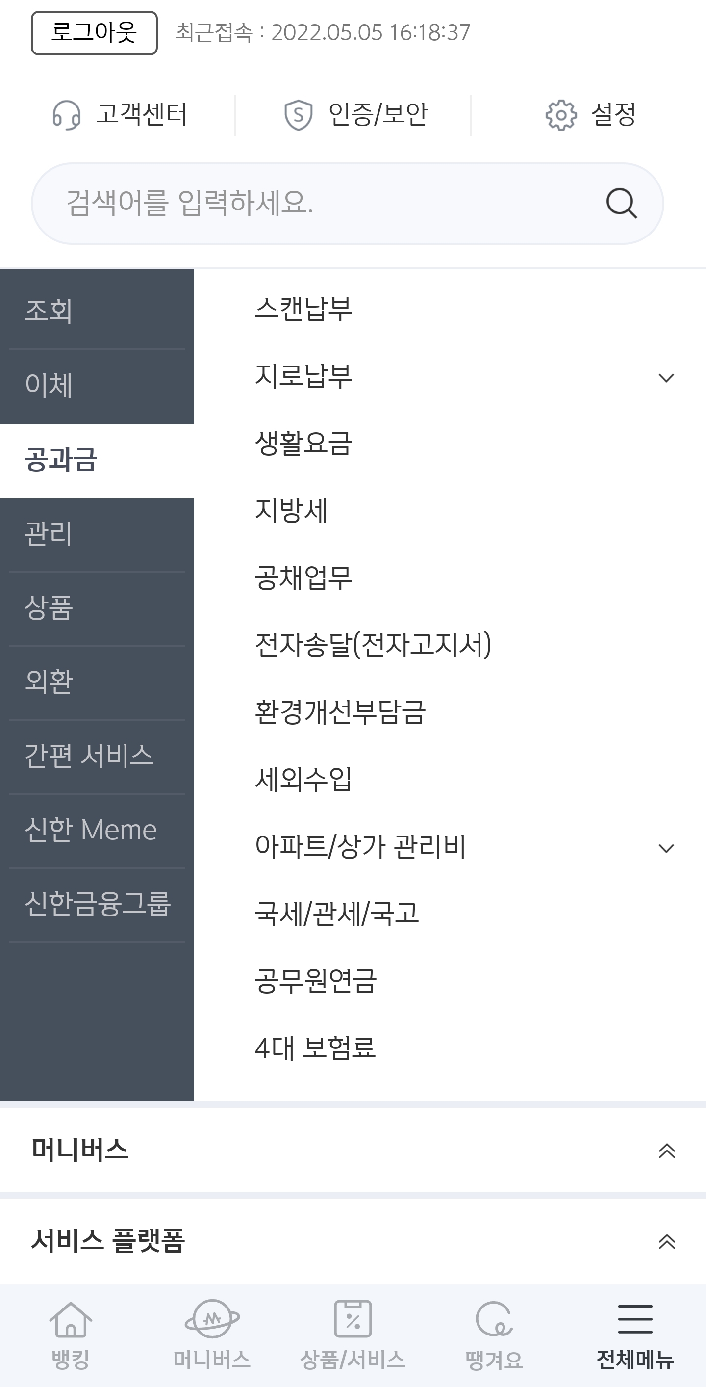 자동차 환급금 조회 신청 (신한은행 모바일앱 - 공동인증서 로그인)